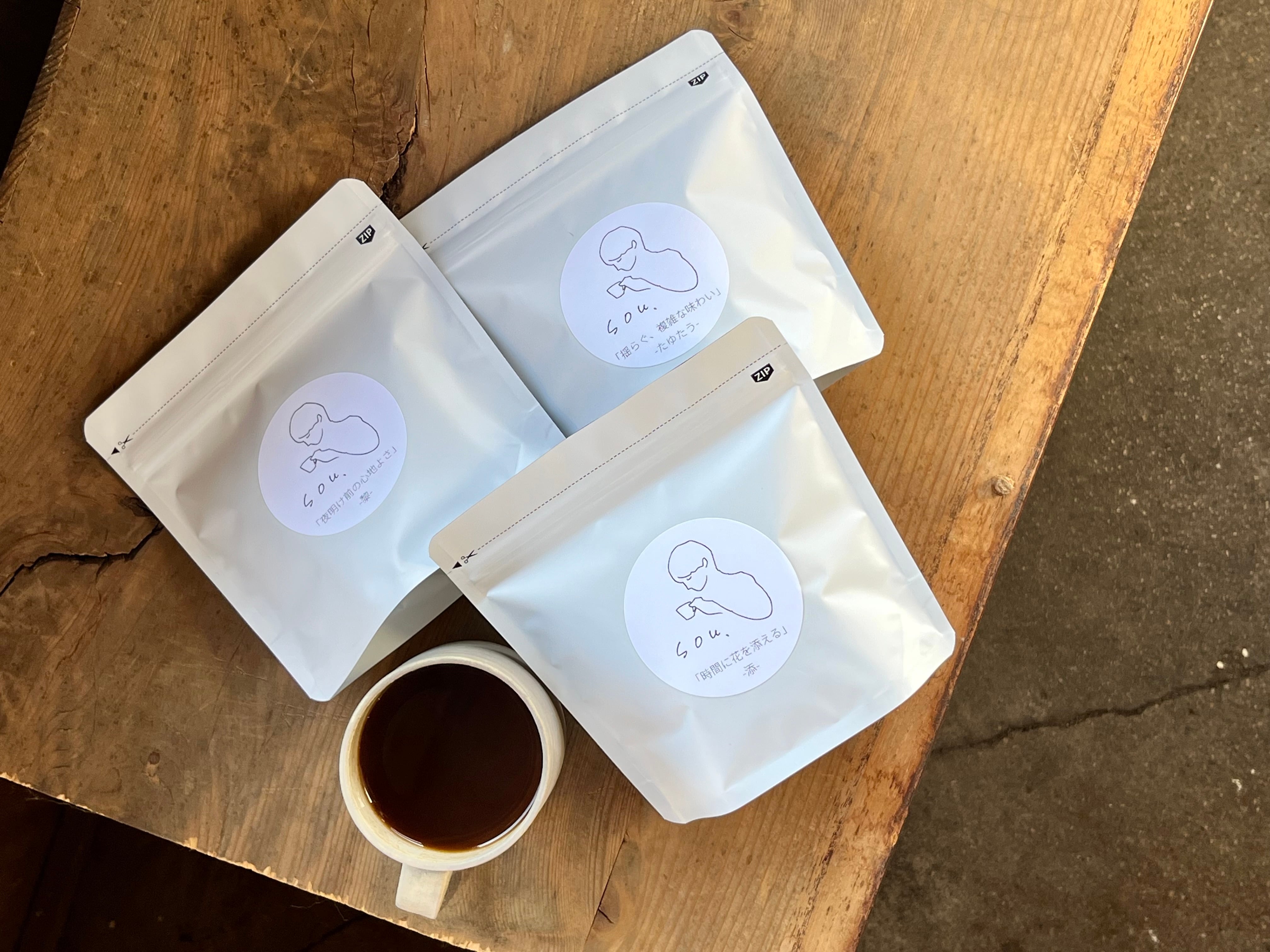 sou.の店主がオススメする、オンラインショップ限定のコーヒー豆3種類のおまかせセットです。